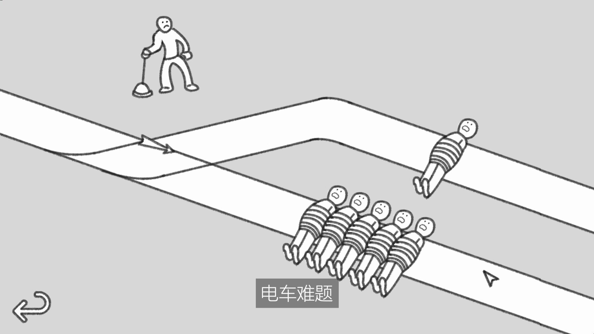 参与诸如电车难题、无限猴子、缸中之脑等著名思想实验的模拟,体验这些扭曲情景与喜剧的黑色幽默诠释。