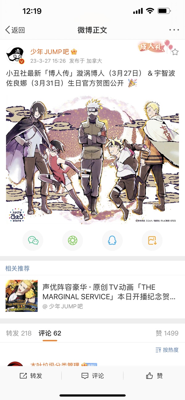 庆祝小孩生日所以画两父亲带孩子…… 尤其是我不看博人传都听说了佐助长年不回家一人,这很难评😷